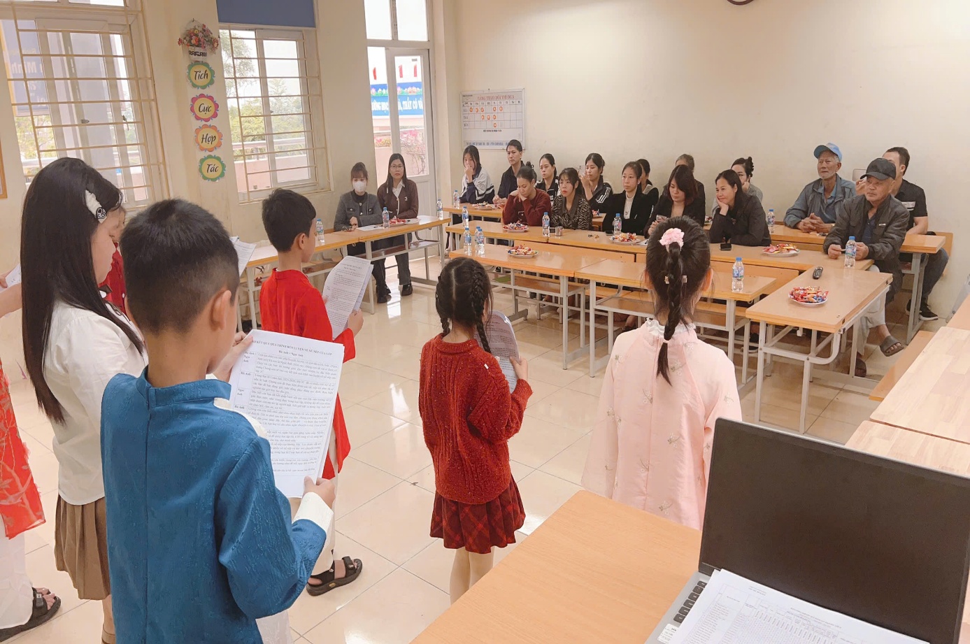 Mới ngày nào, tiếng trống khai trường vừa điểm báo hiệu một năm học mới bắt đầu, vậy mà giờ đây cô và trò Trường Tiểu học Bích Hòa đã đi qua một nửa chặng đường học tập. Mỗi không gian lớp học, từng chiếc bảng xinh xắn đều được các thầy cô giáo chuẩn bị rất chu đáo thay cho lời mời trân trọng gửi tới quý phụ huynh đến cùng lắng nghe, chia sẻ với những thành quả mà cô trò đã đạt được.