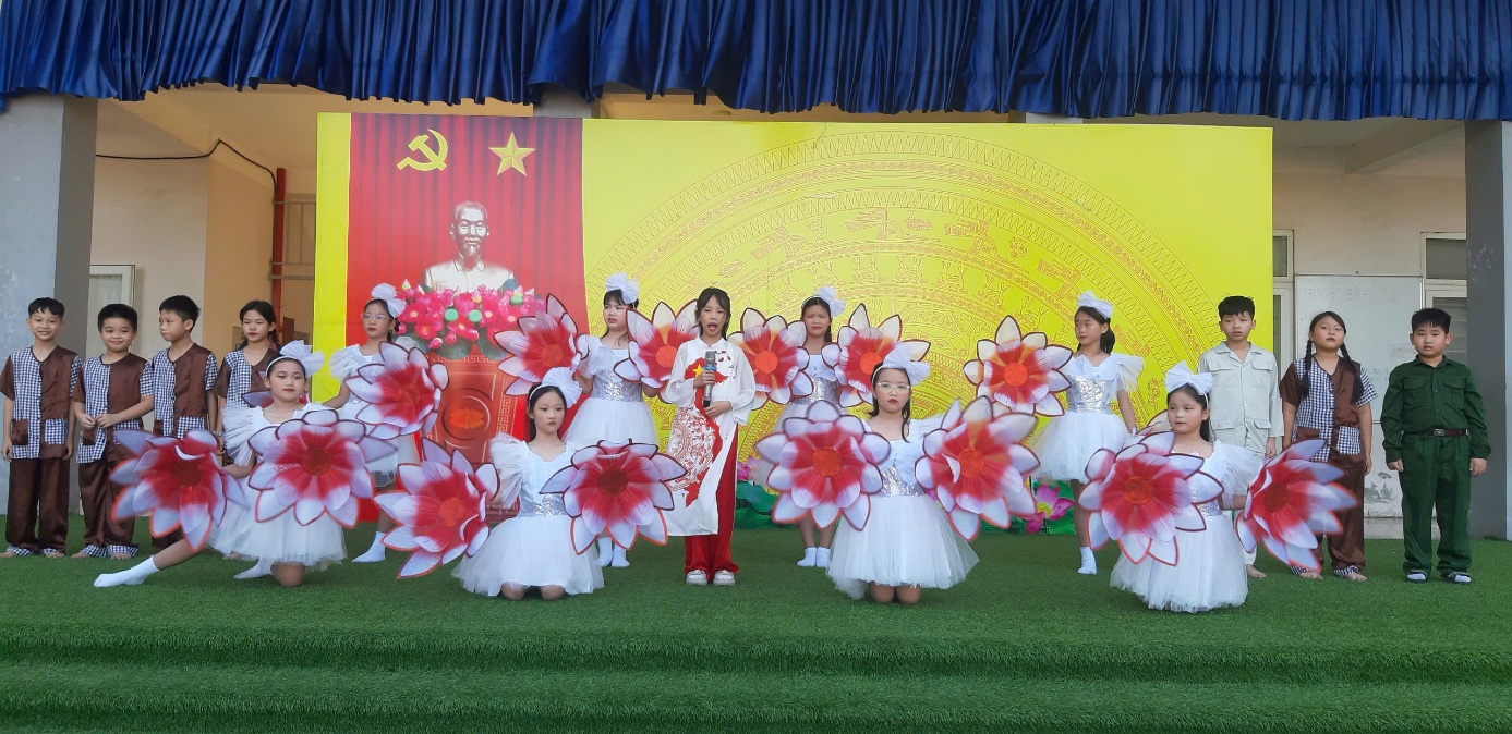 Ở khối lớp 1, tiết mục của các em đã mang đến sự hồn nhiên, tươi mới, như một lời chào đầu đầy trong sáng, làm bừng lên sân khấu bởi sự tự tin và đáng yêu của các em học sinh nhỏ tuổi nhất trường.
