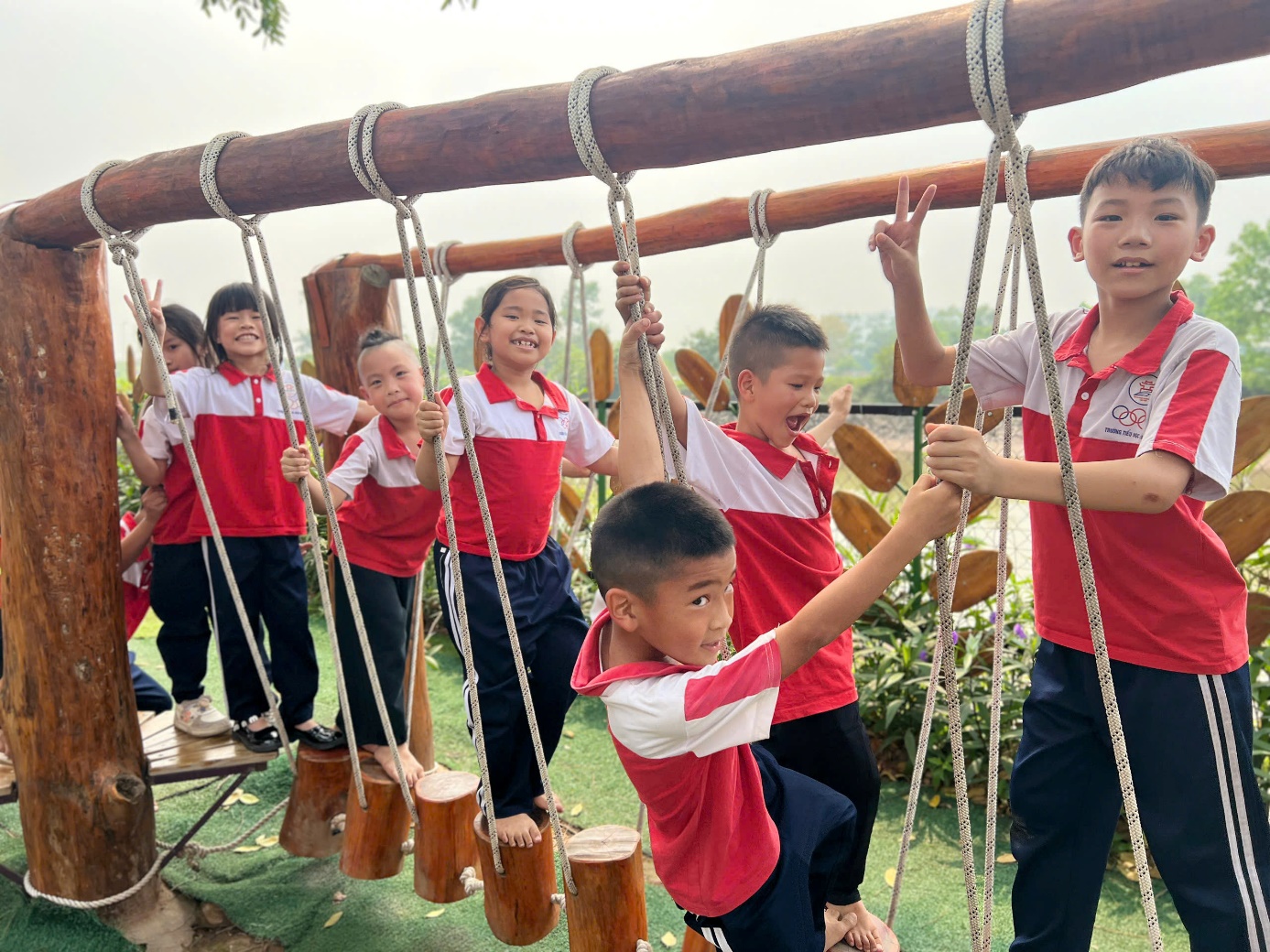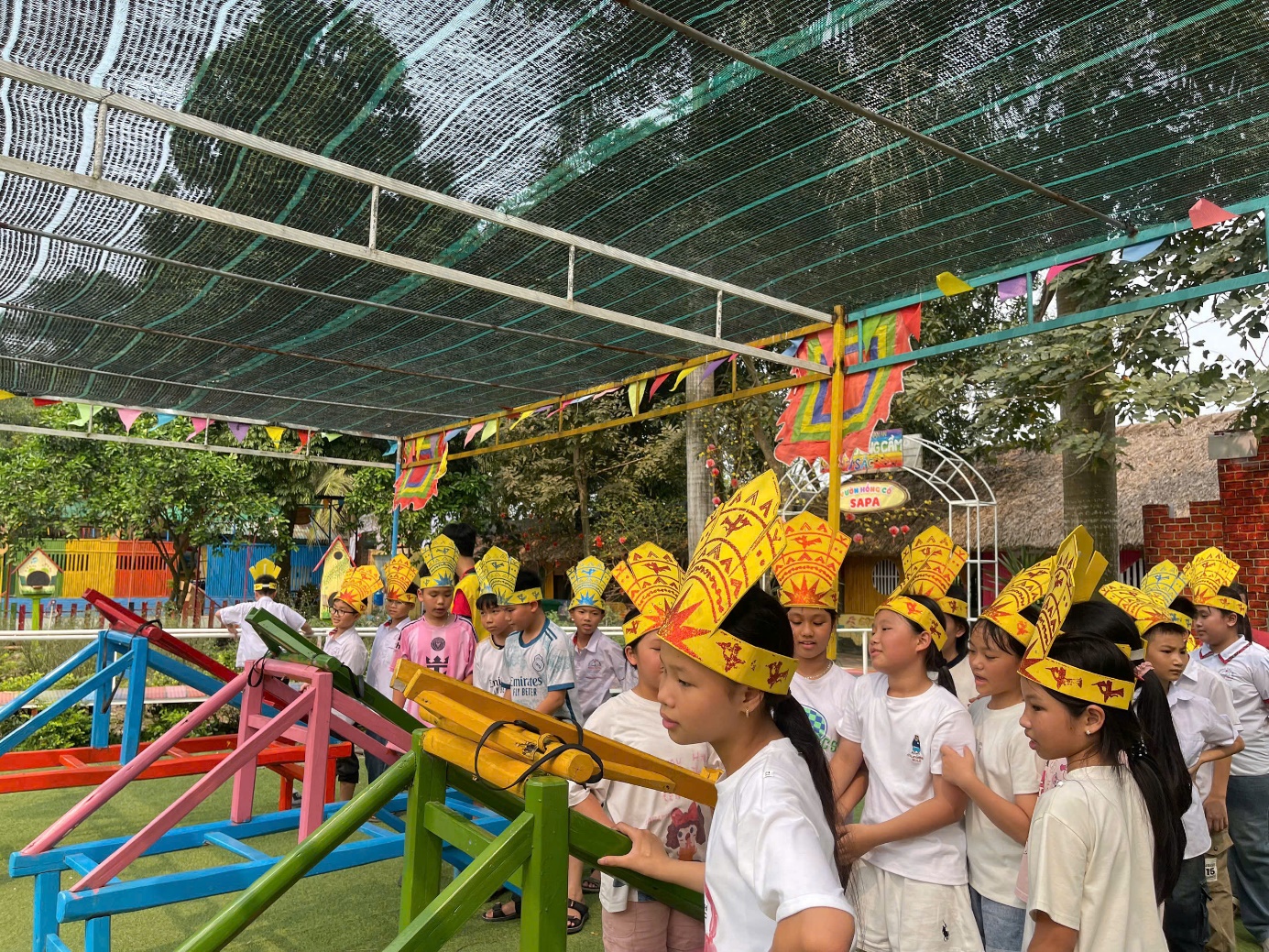 Bên cạnh đó, trang trại còn tổ chức nhiều trò chơi tập thể vui nhộn, giúp các em được vận động, rèn luyện sức khỏe và tăng cường tinh thần đoàn kết. Tiếng cười nói rộn ràng, những khuôn mặt rạng rỡ đã tạo nên một bầu không khí thật vui tươi, sôi nổi. Qua các hoạt động trải nghiệm, học sinh không chỉ được mở rộng hiểu biết về sản xuất nông nghiệp mà còn hình thành ý thức yêu lao động, trân trọng thành quả lao động và nâng cao ý thức bảo vệ môi trường.